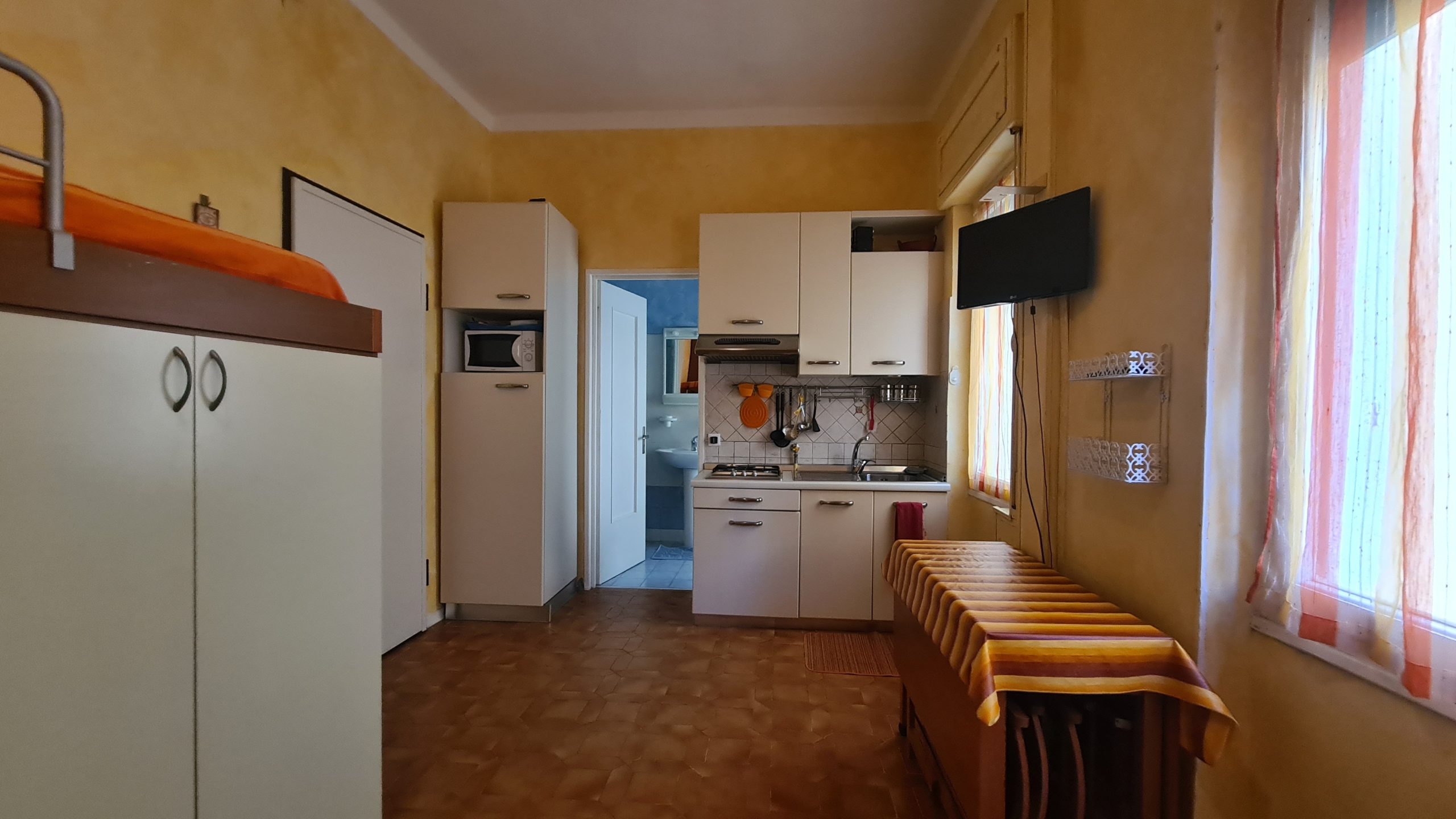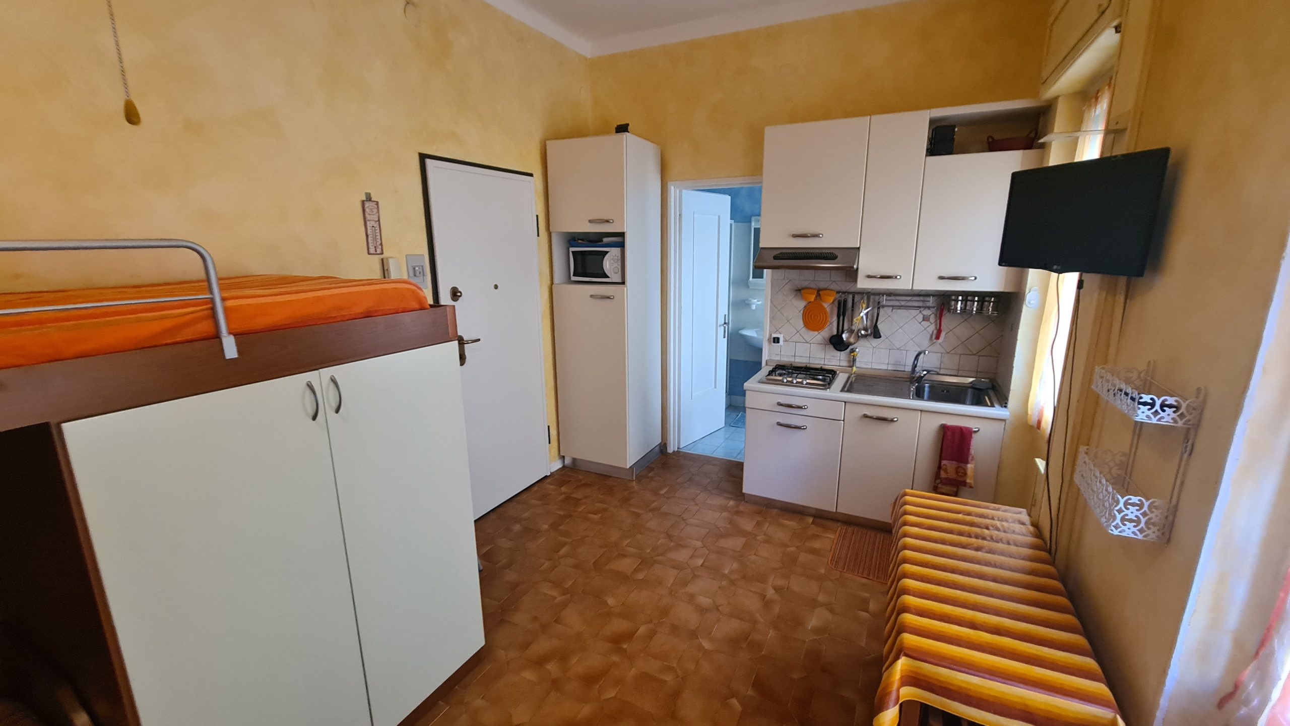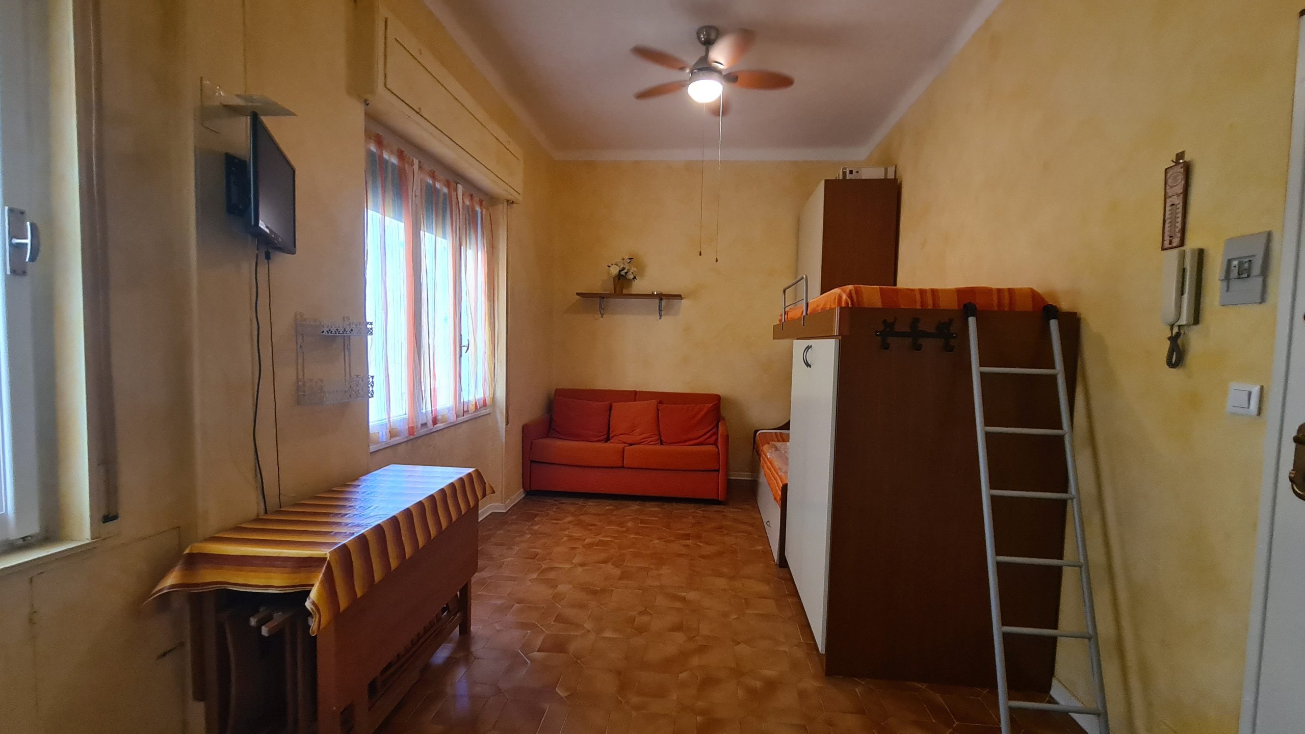 In zona centrale (in Corso Roma) e comodissima al mare e a tutti i servizi, proponiamo in vendita un monolocale al primo piano di uno condominio dotato di ascensore. L' appartamento è dotato di ingresso nella monocamera (che funge sia da zona giorno che da zona notte) e bagno con box doccia e finestra. Attualmente l'alloggio è arredato per ottenere 4 posti letto. Le spese di condominio sono molto contenute, circa 200 € annui.